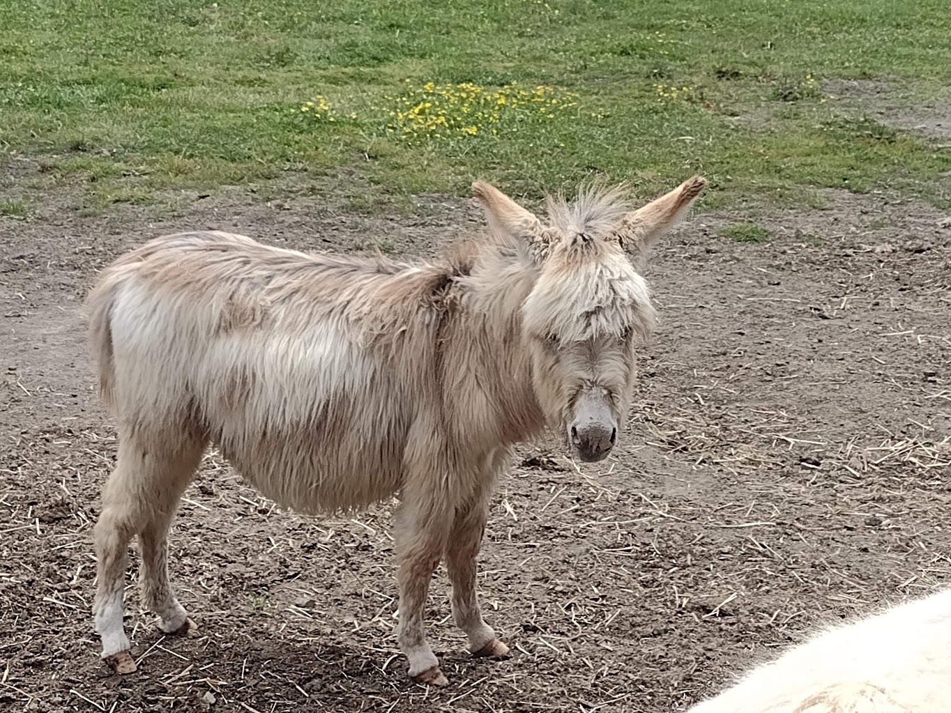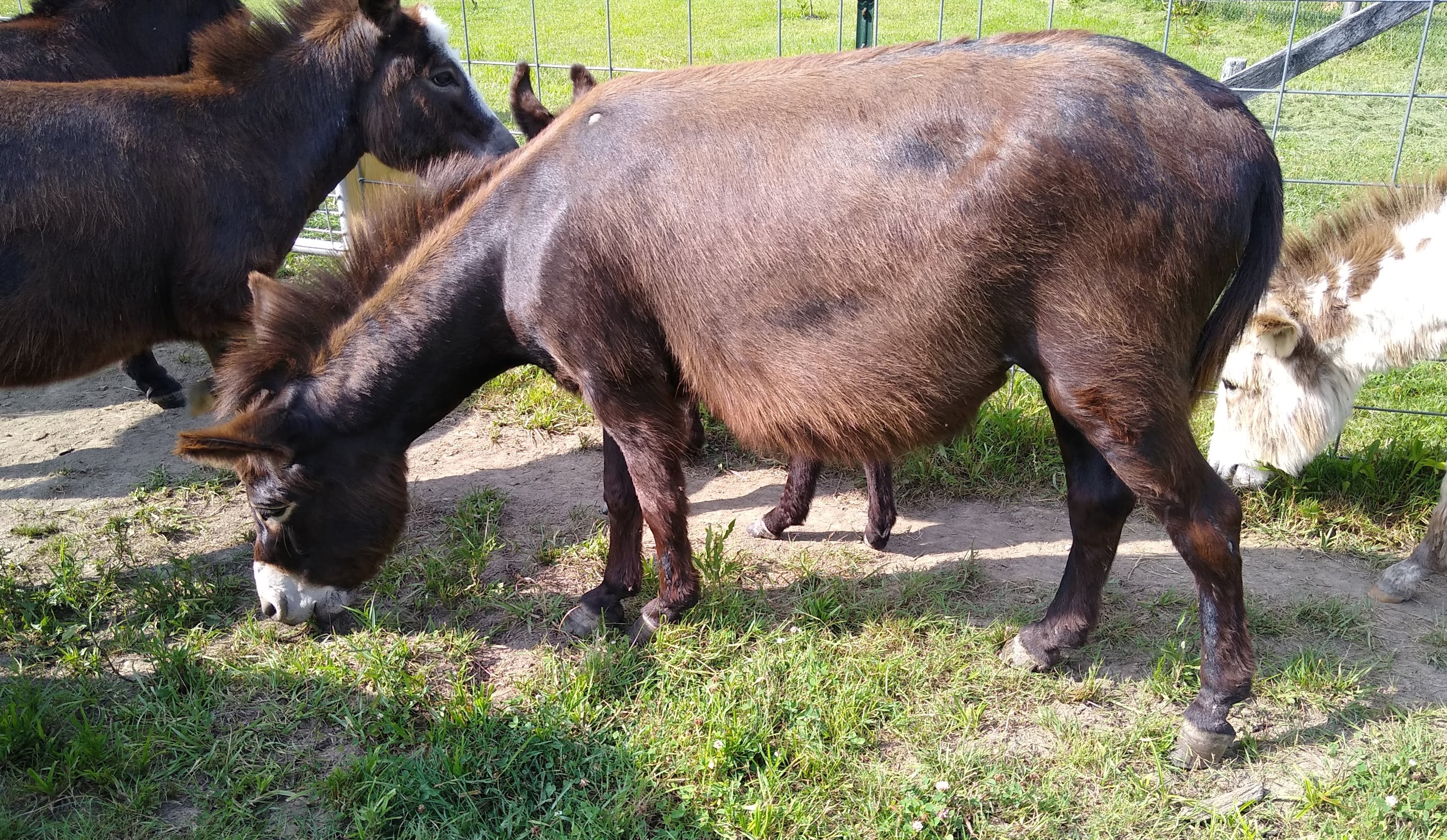 Hinny 40″ No papers mini mule but Nice boy. Pastures with our mammoth and mini donkeys. He needs someone who will work with him and give him a job. Send email to northendacres@gmail.com with interest!