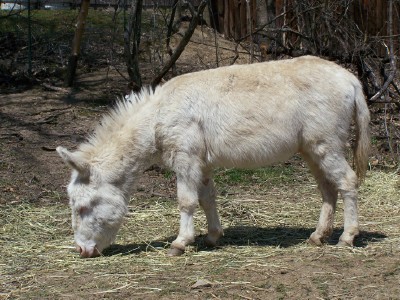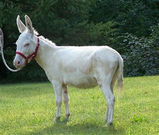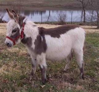 JT Chance was gelded the summer of 2012- Our handsome Chance made the most beautiful babies but he was quite āhormonalā and was constantly devising new ways to scale the highest fences or dig holes under them to reach the forbidden fruit!! One summer he got his head stuck under a chain linked fence and almost lost an ear!! He still sports the scar from that adventure!! He never stopped moving and it was impossible to keep any weight on him so, for his own health and my sanity I had him gelded. It was a hard decision to make since his offspring were so nice but it was the right decision. He is now gaining weight back, settling down and spends his days in the pasture enjoying the company of a whole harem of beautiful jennets! He was our very first ivory jack. Chance is now out to greener pastures and living in mid-Ohio. He is retired to a pet home along with our beautiful ivory jennet Sweet Matylda.