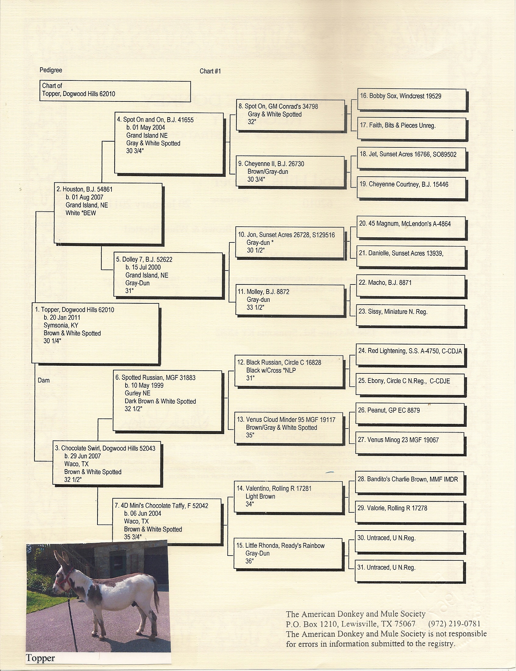 - Dam: Dogwood Hills Cocoa 34ā³ Dk brown